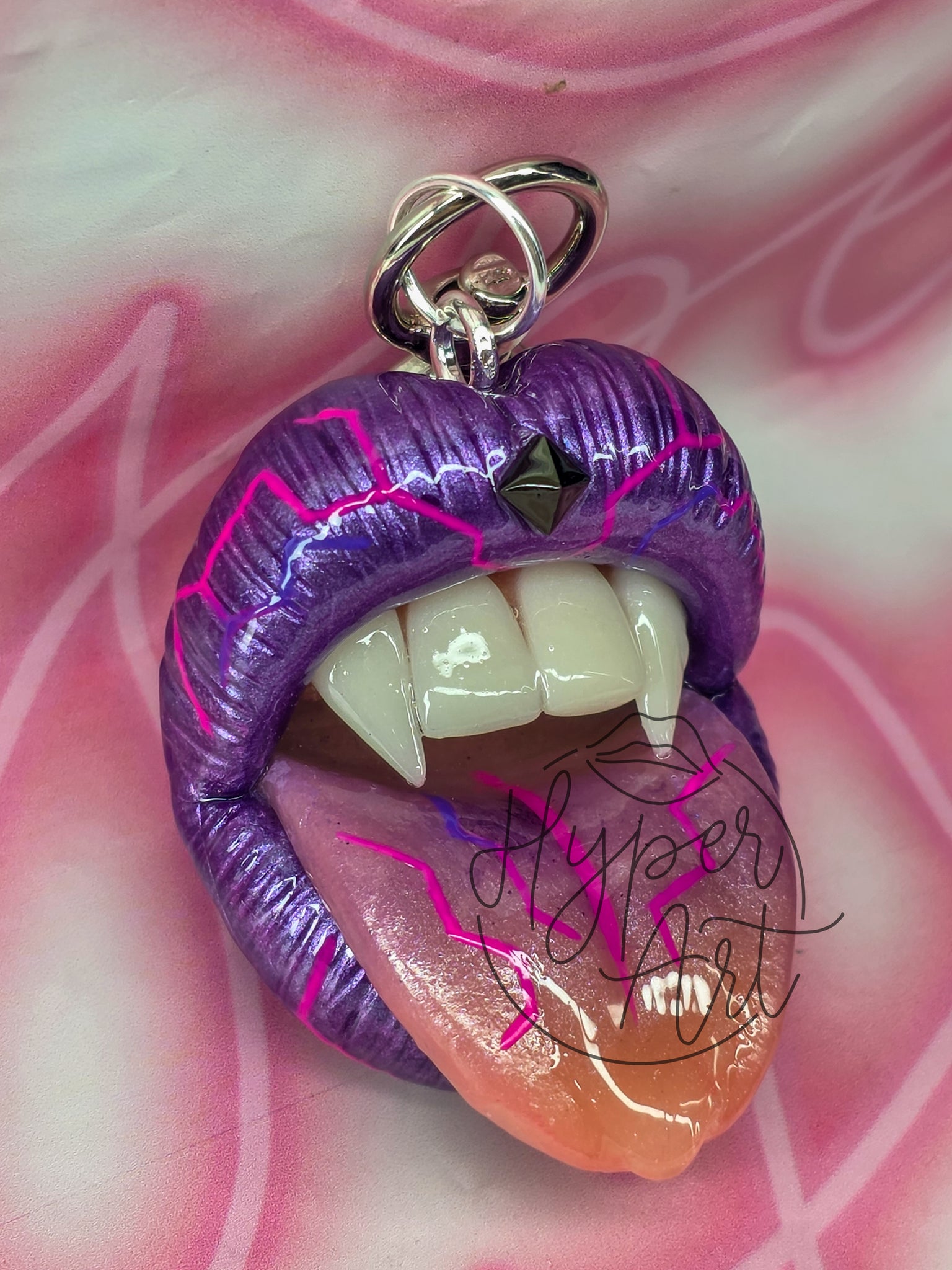 Add some out-of-this-world style to your keys with the IonLine Keychain. Featuring metallic purple lips with neon pink galactic designs, a stunning black gem at the center of the top lip, and more neon pink line designs on the tongue, this keychain is the perfect blend of futuristic and fabulous. Keep your keys in style with the IonLine Keychain!