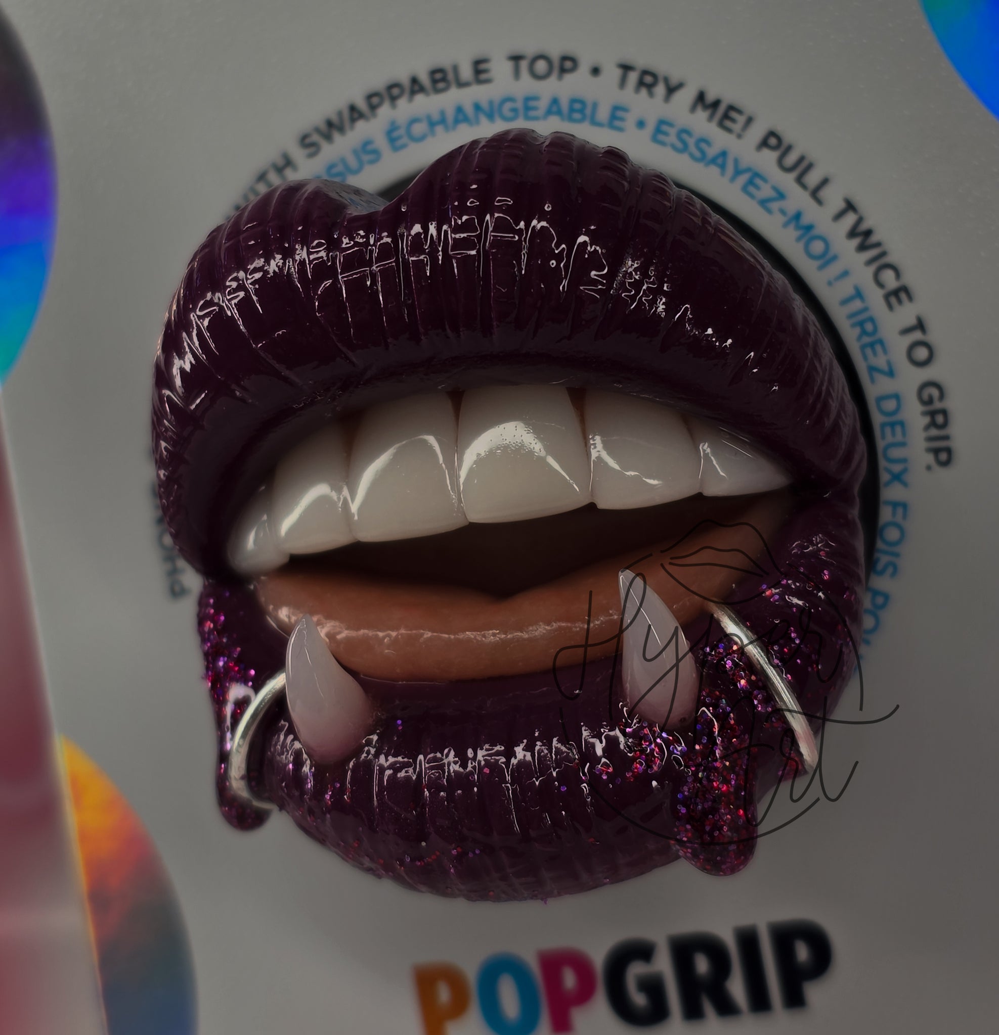 Get your claws on the Succubite Popsocket - with plum lip color, fangs from the bottom lip and piercings, and dripping plum glitter it'll give your phone a dangerous, yet chic edge. Perfect for all the vampire lovers out there. Bite into style with Succubite!